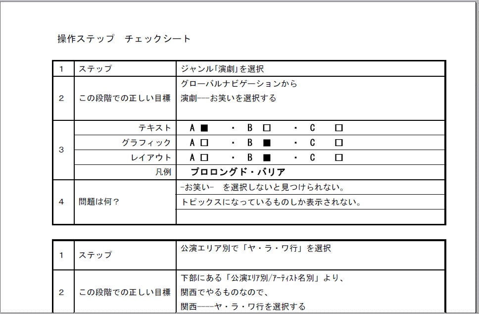 ステップ1、ジャンル「演劇」の画面に入る ステップ2、公演エリア別リンク画面に入る ステップ3、イベント一覧画面に入る ステップ4、チケット詳細画面に入る --------成果-------- 今回、データをまとめてNE比のグラフを起こしたところ、タスクのステップ2の段階に、特に問題があることが分かりました。